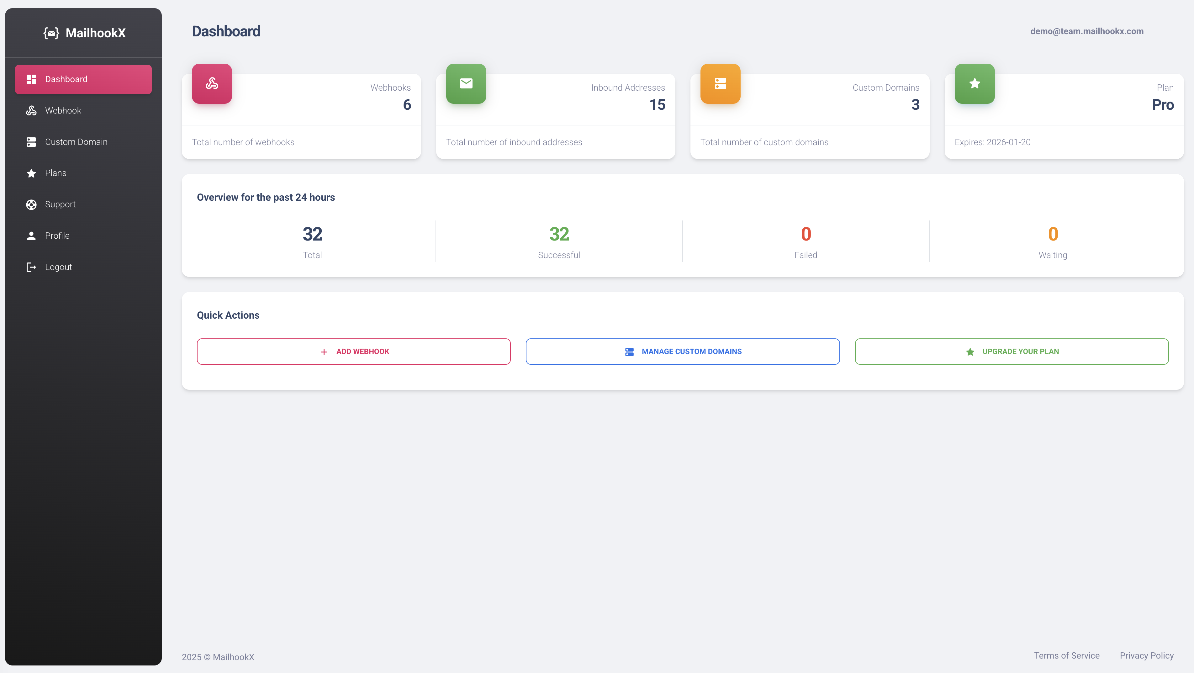 Real-time Notifications Get instant webhook notifications when emails arrive. Configure retry policies, timeout settings, and failure alerts to never miss a message.